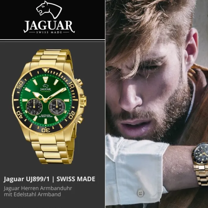 Die Marke Jaguar-Uhren steht seit 1938 für Schweizer Uhren von höchster Qualität und Eleganz. Die außergewöhnliche Präzision der Mechanismen, kombiniert mit dem traditionellen Design eleganter und sportlicher Modelle, macht die Uhren zu einem Statement für zeitlose Schönheit und hochwertige Handwerkskunst.