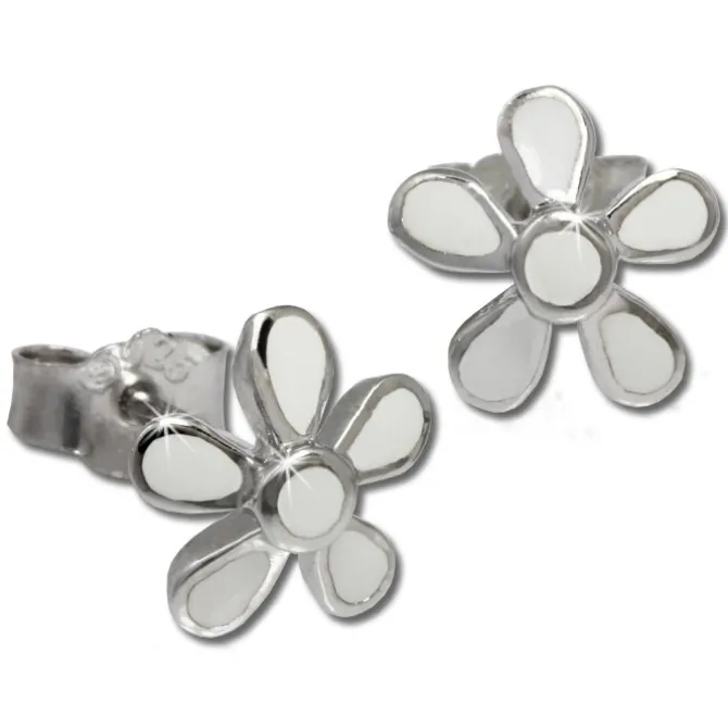 Teenie-Weenie Kinder Ohrstecker Blume weiß aus unserer Kinderschmuck Kollektion aus anlaufgeschütztem 925 Sterling Silber.