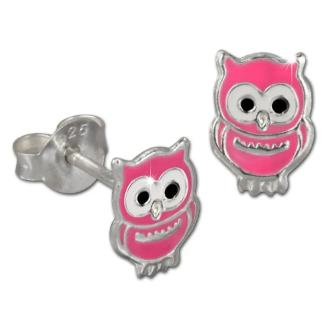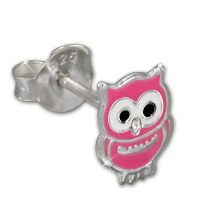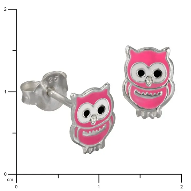 Teenie-Weenie Kinder Ohrstecker Eule rosa aus unserer Kinderschmuck Kollektion aus anlaufgeschütztem 925 Sterling Silber.