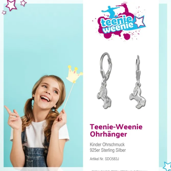 Schöne Kinder Ohrhänger aus 925er Sterling Silber aus der Teenie-Weenie Ohrschmuck-Kinderschmuck Kollektion. Unter dem Teenie-Weenie Schmuck finden sich kindlich bis jugendlich trendiger Artikel. Es gibt Kinderschmuck aus Leder, Silber, Edelstahl und weiteren Materialien in verschiedenen kindlichen Farben. Hier findet sich alles was Ihr Kind sucht.