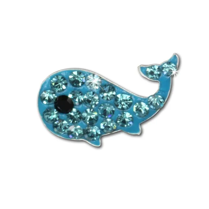 Teenie-Weenie Kinder Ohrstecker Wal mit vielen kleinen hellblauen Zirkonias aus unserer Kinderschmuck Kollektion aus anlaufgeschütztem 925 Sterling Silber. Die Kristalle funkeln und glitzern auf dem Ohrring.