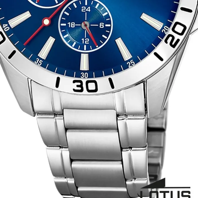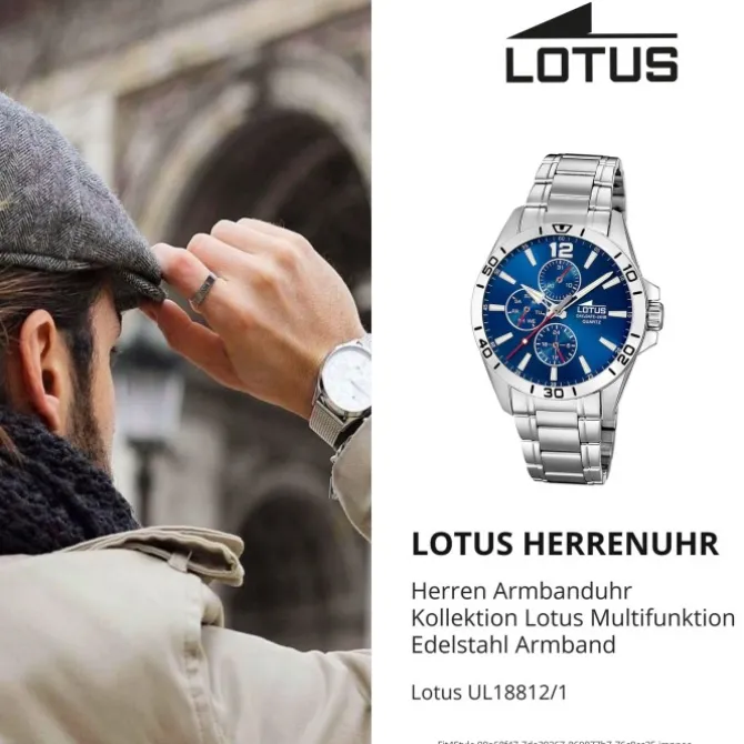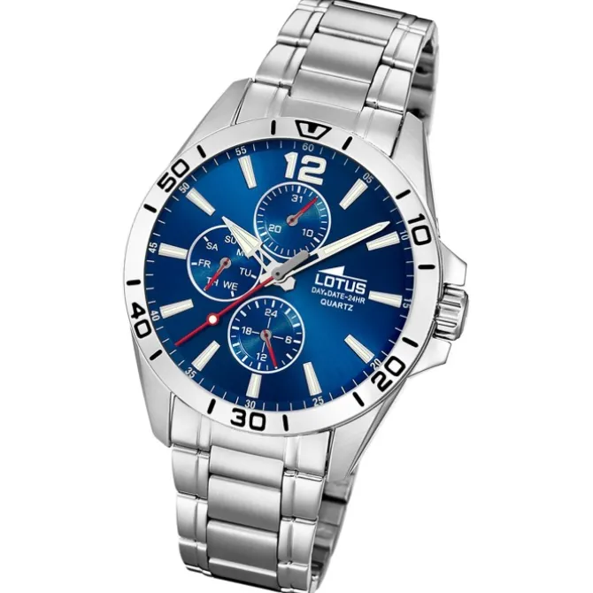 Die Lotus Uhrenkollektion ?Multifunktion? ist eine Reihe von eleganten Uhren mit verschiedene Funktionen wie Datum, Alarm und Stoppuhr. Die Uhren sind aus Edelstahl und haben ein analoges Zifferblatt mit digitalen Anzeigen.