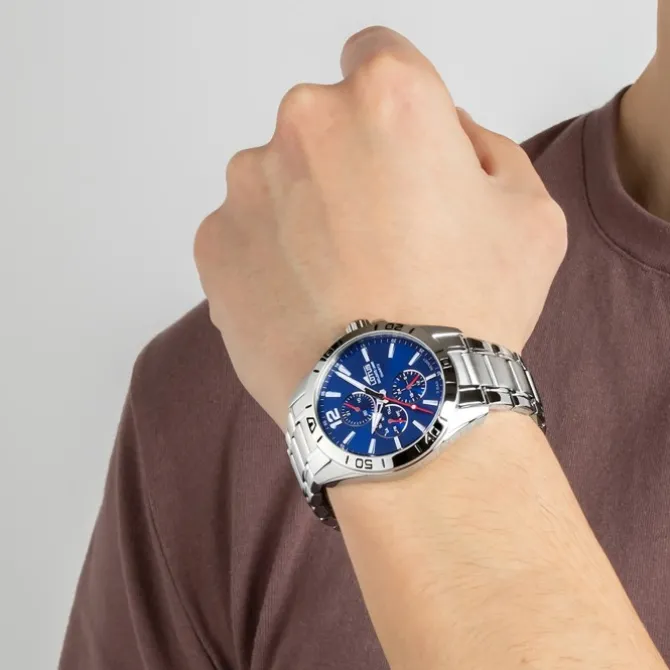Diese einzigartige Uhr für Herren aus der aktuellen Multifunktion Kollektion garantiert hohen Tragekomfort durch das hochwertige Edelstahl-Armband in silber. Die Armbanduhr mit analoger Anzeige und präzisem Armbanduhr ist ein zuverlässiger Begleiter in Alltag und Freizeit.
