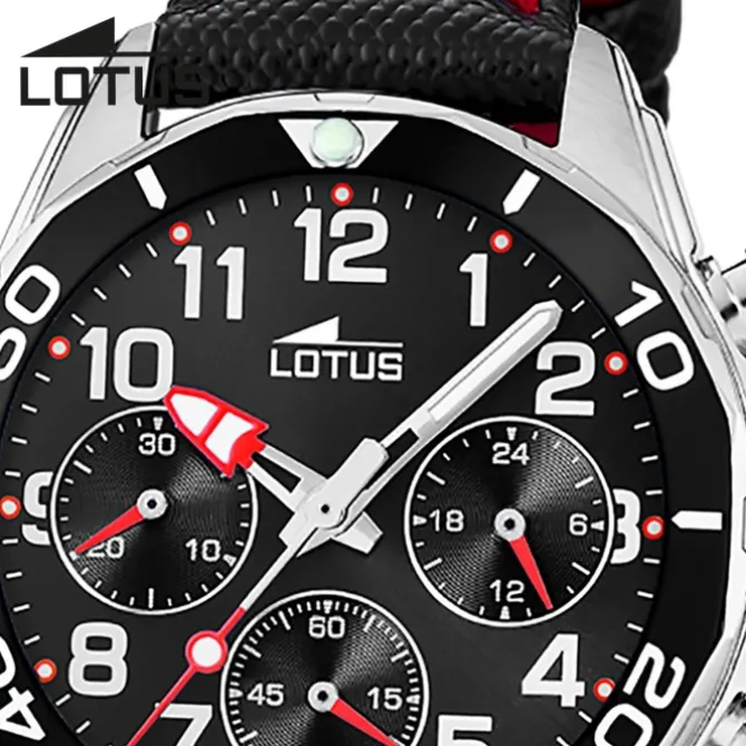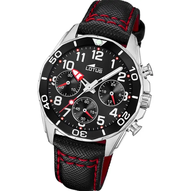 Diese einzigartige Uhr für Jugend, Kinder aus der aktuellen Lotus Classic Kollektion garantiert hohen Tragekomfort durch das hochwertige Leder-Armband in schwarz. Der Chronograph und präzisem Armbanduhr ist ein zuverlässiger Begleiter in Alltag und Freizeit.