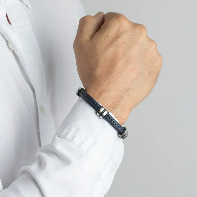 Ein Armband aus der Lotus Style Urban Kollektion für Damen/Herren aus Leder mit Hakenverschluss. Der blaue Armschmuck von Lotus Style hat die Bestellnummer JLS1829-2-5