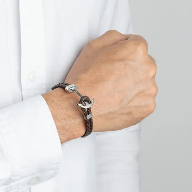 - Besonderheiten: Leder braun, Haken in Ankerform silber