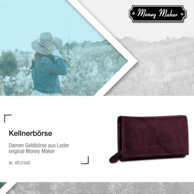 Money Maker Geldbörse Querformat Echtleder bordeaux Portemonnaie OPJ704D
