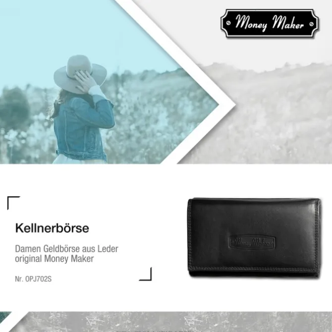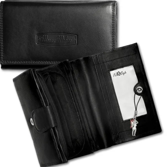 Geldbörse Echtleder, glatt schwarz Portemonnaie – Money Maker