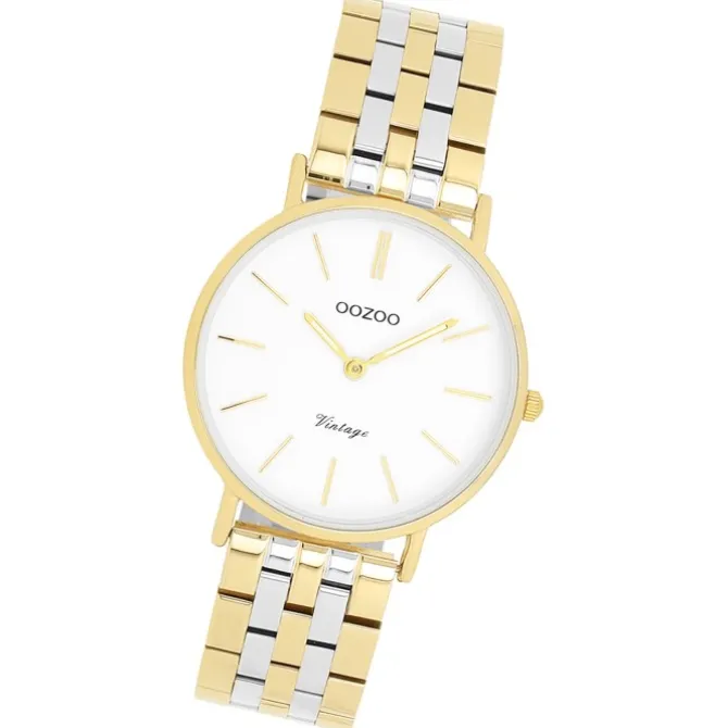 Die elegante Uhr für Damen aus der exklusiven Oozoo OOZOO Vintage -Kollektion hat ein hochwertiges Metall-Armband in silber und gold. Das Gehäuse der Uhr ist mittel (ca. 32mm). Das analoge Uhrwerk und das Uhrenglas aus Mineralglas machen diese Armbanduhr zu einem schönen und modischen Accessoire.