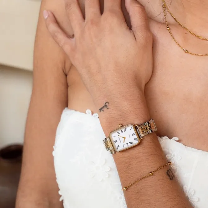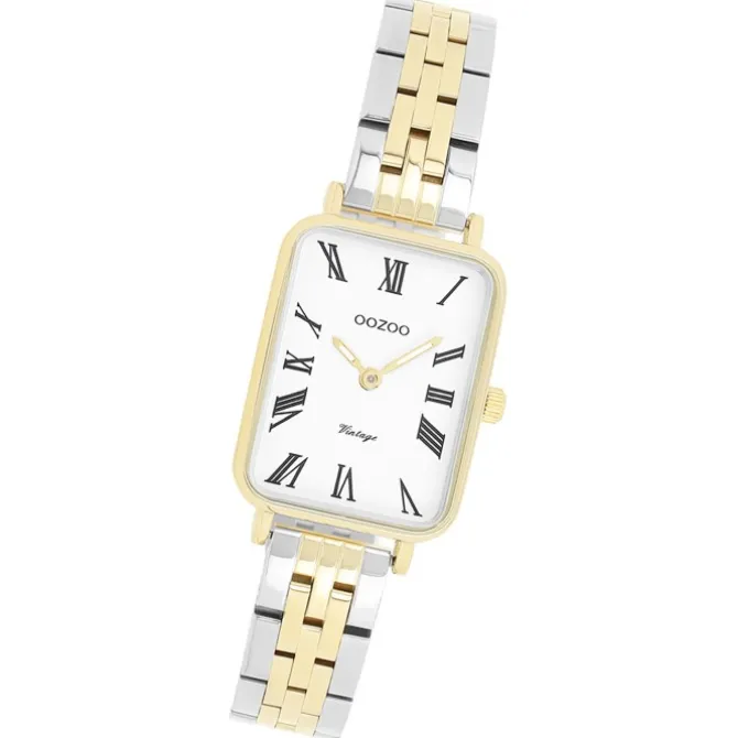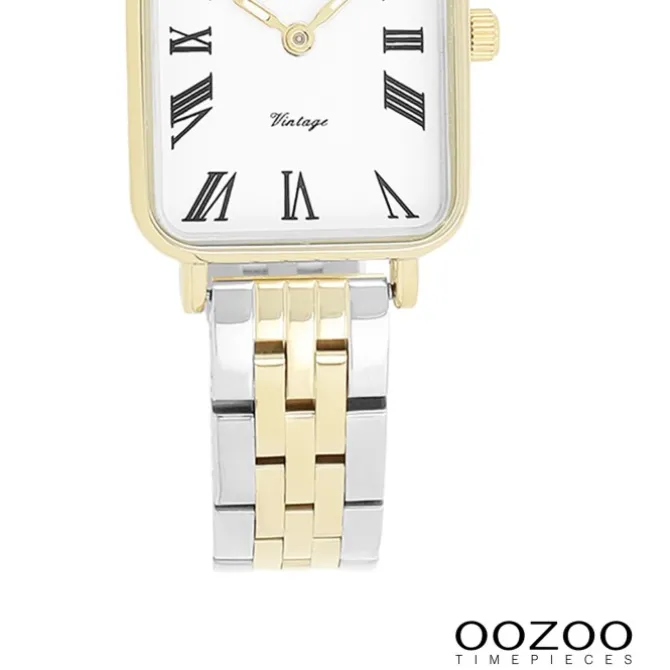 Die Fashion Uhr für Damen aus der exklusiven Oozoo OOZOO Vintage -Kollektion hat ein hochwertiges Metall-Armband in silber und gold. Das Gehäuse der Uhr ist extra groß (ca. 24x28mm). Das analoge Uhrwerk und das Uhrenglas aus Mineralglas machen diese Armbanduhr zu einem schönen und modischen Accessoire.