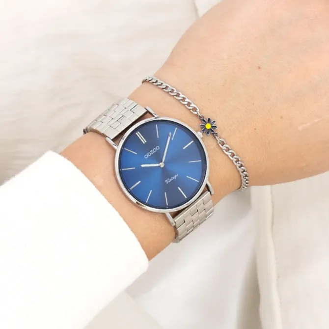 Die elegante Uhr für Damen aus der exklusiven Oozoo OOZOO Vintage -Kollektion hat ein hochwertiges Metall-Armband in silber. Das Gehäuse der Uhr ist groß (ca. 40mm). Das analoge Uhrwerk und das Uhrenglas aus Mineralglas machen diese Armbanduhr zu einem schönen und modischen Accessoire.