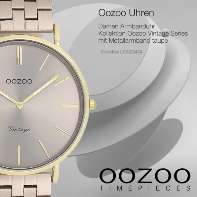 Die elegante Uhr für Damen aus der exklusiven Oozoo OOZOO Vintage -Kollektion hat ein hochwertiges Metall-Armband in taupe und braun. Das Gehäuse der Uhr ist groß (ca. 40mm). Das analoge Uhrwerk und das Uhrenglas aus Mineralglas machen diese Armbanduhr zu einem schönen und modischen Accessoire.