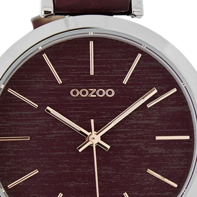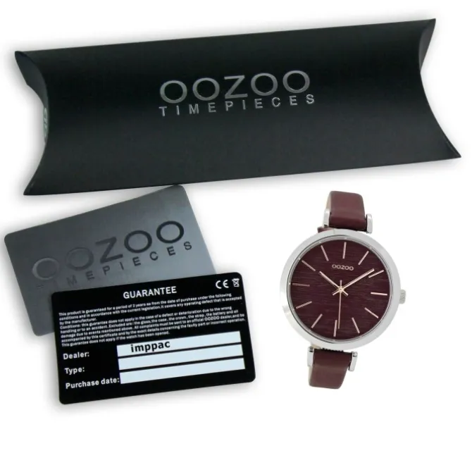 Diese Luxus Uhr für Damen aus der exklusiven Oozoo Oozoo Timepieces-Kollektion verfügt über ein hochwertiges Leder-Armband in dunkelrot. Das Gehäuse der Uhr ist groß (ca. 40mm). Das analoge Uhrwerk und das Uhrenglas aus Mineralglas machen diese Armbanduhr zu einem hochwertigen und modischen Begleiter.
