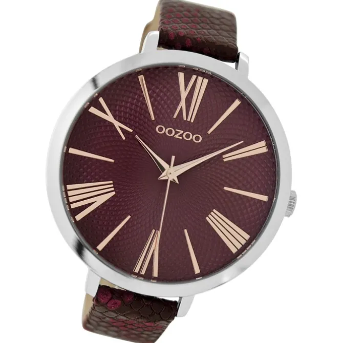 Diese Luxus Uhr für Damen aus der exklusiven Oozoo Oozoo Timepieces-Kollektion verfügt über ein hochwertiges Leder-Armband in dunkelrot. Das Gehäuse der Uhr ist extra groß (ca. 48mm). Das analoge Uhrwerk und das Uhrenglas aus Mineralglas machen diese Armbanduhr zu einem hochwertigen und modischen Begleiter.