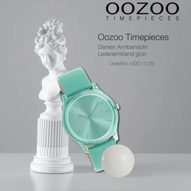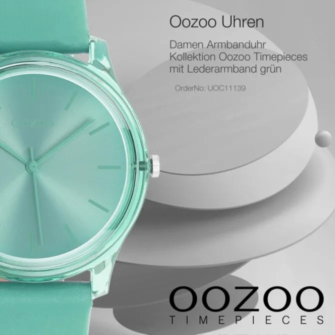 Diese Casual Uhr für Damen aus der exklusiven Oozoo Oozoo Timepieces-Kollektion verfügt über ein hochwertiges Leder-Armband in grün. Das analoge Uhrwerk und eine Wasserdichtigkeit bis 3 bar machen diese Armbanduhr zu einem besonders zuverlässigen Begleiter.