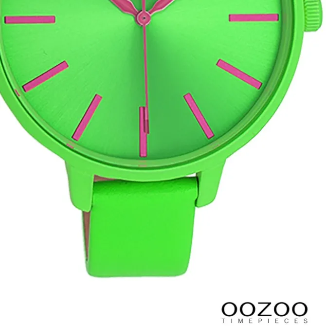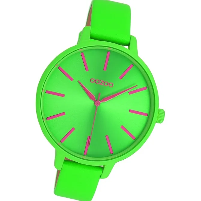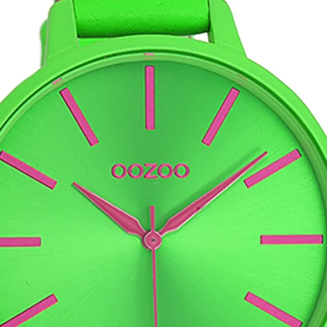 Diese Fashion Uhr für Damen aus der exklusiven Oozoo Oozoo Timepieces-Kollektion verfügt über ein hochwertiges Leder-Armband in grün. Das Gehäuse der Uhr ist groß (ca. 42mm). Das analoge Uhrwerk und das Uhrenglas aus Mineralglas machen diese Armbanduhr zu einem hochwertigen und modischen Begleiter.