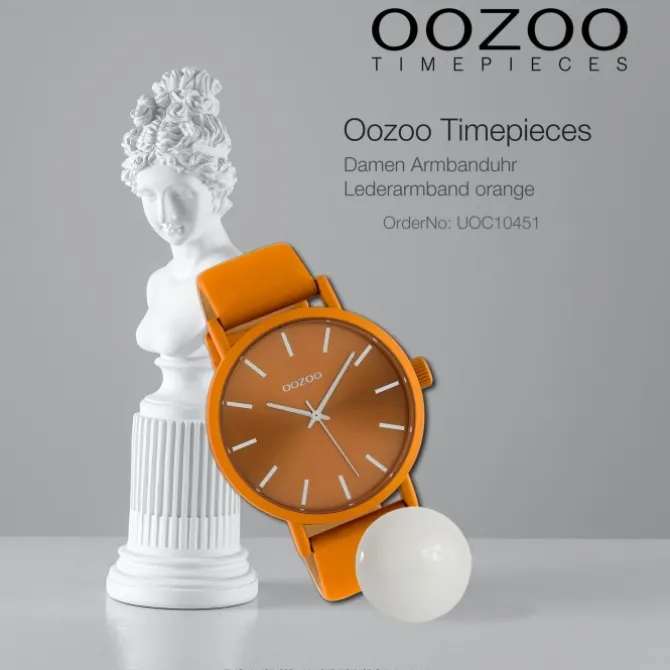 Diese Fashion Uhr für Damen aus der exklusiven Oozoo Oozoo Timepieces-Kollektion verfügt über ein hochwertiges Leder-Armband in orange. Das Gehäuse der Uhr ist groß (ca. 42mm). Das Uhrwerk und das Uhrenglas aus Mineralglas machen diese Armbanduhr zu einem hochwertigen und modischen Begleiter.