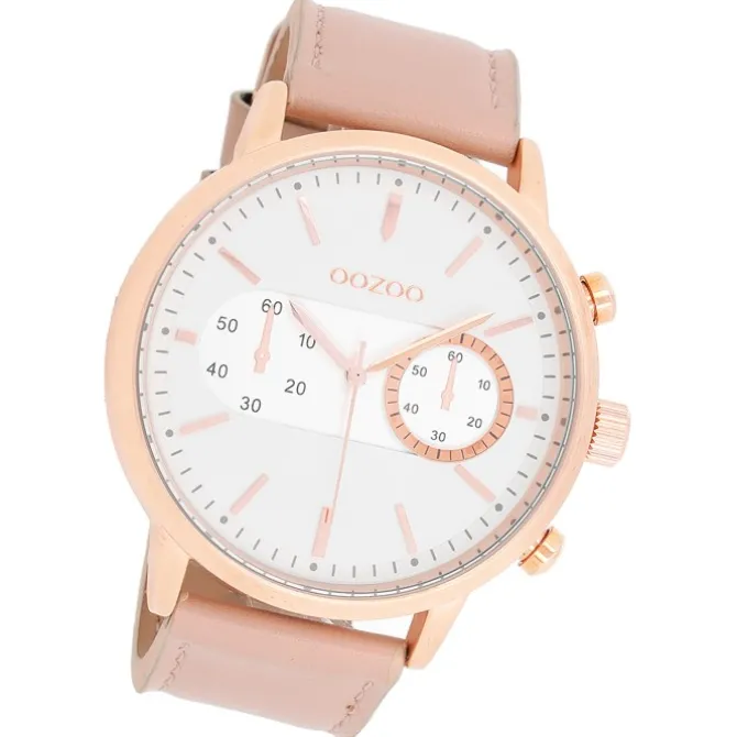 Diese elegante Uhr für Damen aus der exklusiven Oozoo Oozoo Timepieces-Kollektion verfügt über ein hochwertiges Leder-Armband in rosa. Das Gehäuse der Uhr ist extra groß (ca. 50mm). Das analoge Uhrwerk und das Uhrenglas aus Mineralglas machen diese Armbanduhr zu einem hochwertigen und modischen Begleiter.