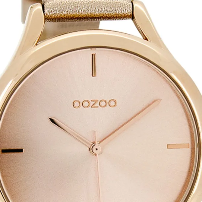Diese elegante Uhr für Damen aus der exklusiven Oozoo Oozoo Timepieces-Kollektion verfügt über ein hochwertiges Leder-Armband in rosegold. Das Gehäuse der Uhr ist mittel (ca. 38mm). Das analoge Uhrwerk und das Uhrenglas aus Mineralglas machen diese Armbanduhr zu einem hochwertigen und modischen Begleiter.