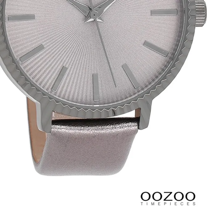 Diese Casual Uhr für Damen aus der exklusiven Oozoo Oozoo Timepieces-Kollektion verfügt über ein hochwertiges Leder-Armband in silber. Das Gehäuse der Uhr ist groß (ca. 44mm). Das analoge Uhrwerk und das Uhrenglas aus Mineralglas machen diese Armbanduhr zu einem hochwertigen und modischen Begleiter.