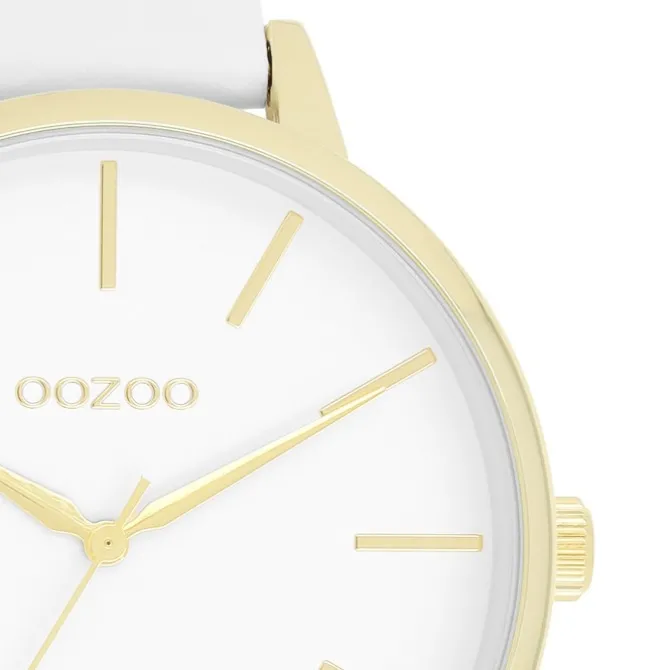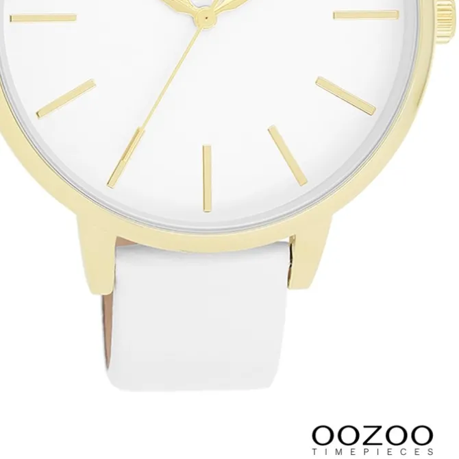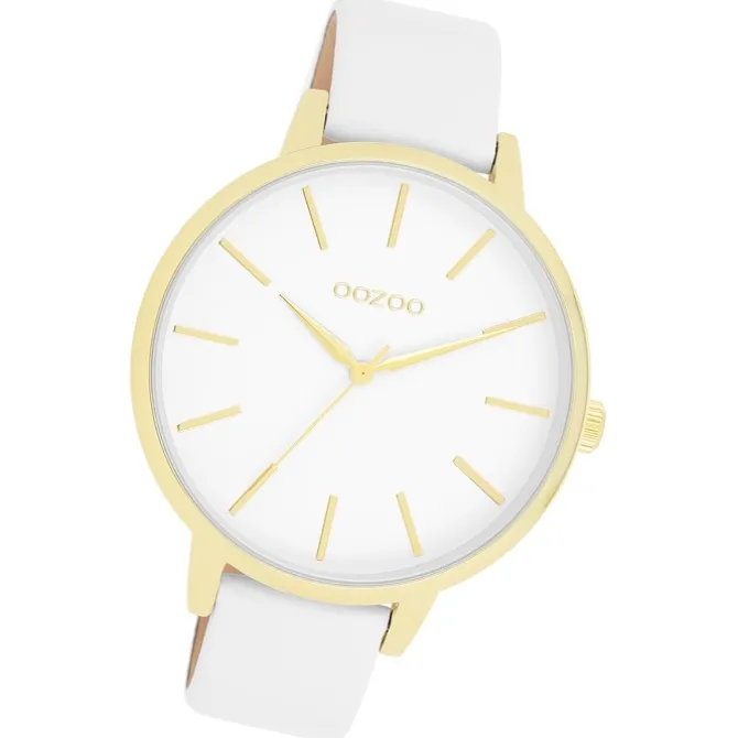 Diese Fashion Uhr für Damen aus der exklusiven Oozoo Oozoo Timepieces-Kollektion verfügt über ein hochwertiges Leder -Armband in weiß. Das Gehäuse der Uhr ist groß (ca. 42mm). Das analoge Uhrwerk und das Uhrenglas aus Mineralglas machen diese Armbanduhr zu einem hochwertigen und modischen Begleiter.