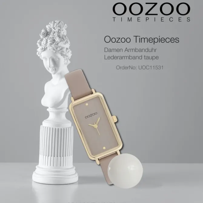 Die Fashion Uhr für Damen aus der exklusiven Oozoo Oozoo Timepieces-Kollektion hat ein hochwertiges Leder-Armband in taupe und braun . Das Gehäuse der Uhr ist extra groß (ca. 19x31mm). Das analoge Uhrwerk und das Uhrenglas aus Mineralglas machen diese Armbanduhr zu einem schönen und modischen Accessoire.