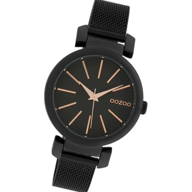 Diese Fashion Uhr für Damen aus der exklusiven Oozoo Oozoo Timepieces-Kollektion verfügt über ein hochwertiges Metall-Armband in schwarz. Das Gehäuse der Uhr ist mittel (ca. 36mm). Das analoge Uhrwerk und das Uhrenglas aus Mineralglas machen diese Armbanduhr zu einem hochwertigen und modischen Begleiter.