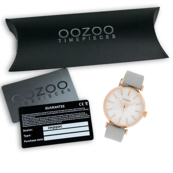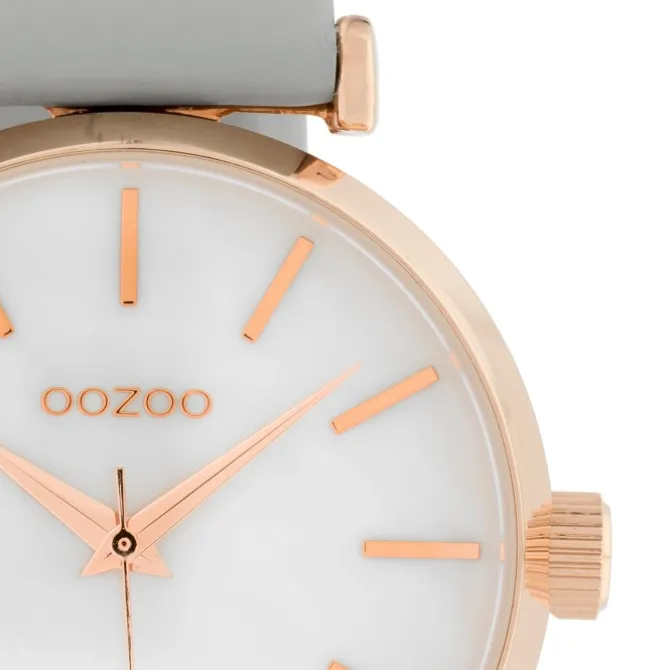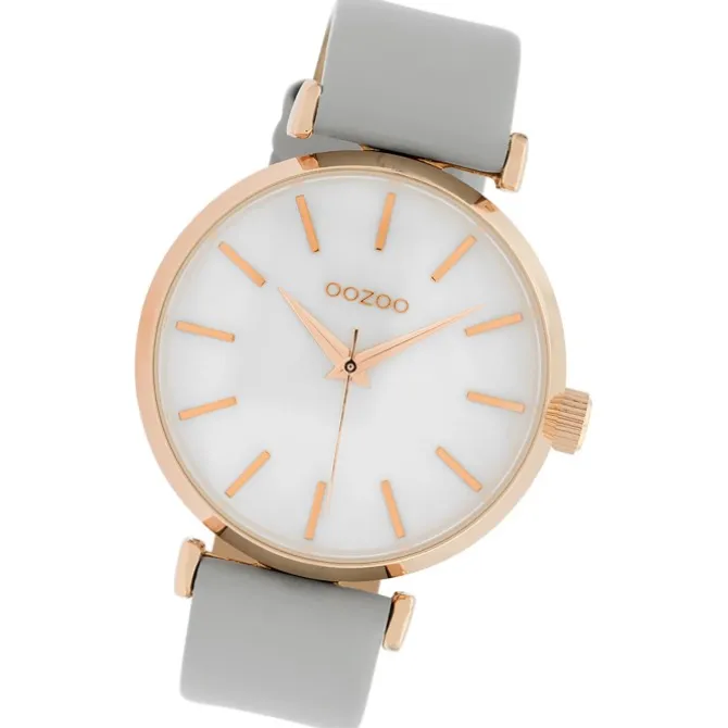 Diese Fashion Uhr für Damen aus der exklusiven Oozoo Timepieces-Kollektion verfügt über ein hochwertiges Leder-Armband in hellgrau. Das analoge Quarzwerk und die Wasserdichte bis 3 bar machen diese Armbanduhr zu einem besonders zuverlässigen Begleiter.
