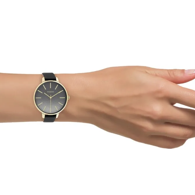 Diese Fashion Uhr für Damen aus der exklusiven Oozoo Oozoo Timepieces-Kollektion verfügt über ein hochwertiges Leder-Armband in schwarz. Das analoge Uhrwerk und eine Wasserdichtigkeit bis 3 bar machen diese Armbanduhr zu einem besonders zuverlässigen Begleiter.