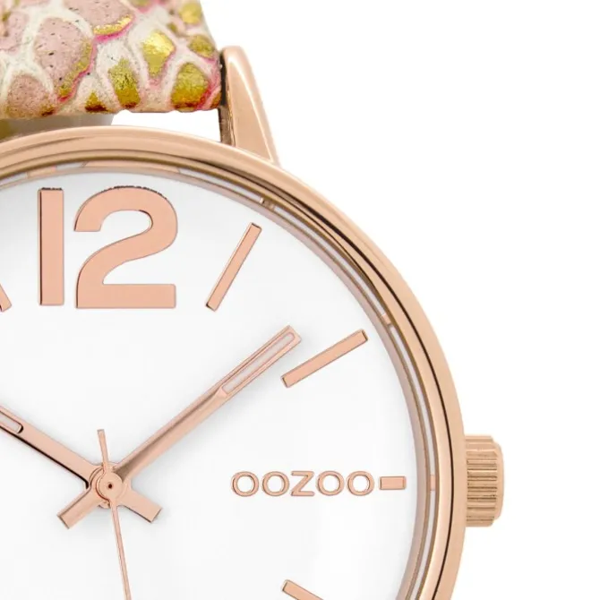 Diese Fashion Uhr für Damen aus der exklusiven Oozoo Timepieces-Kollektion verfügt über ein hochwertiges Leder-Armband in pink und gold. Das analoge Quarzwerk und die Wasserdichte bis 3 bar machen diese Armbanduhr zu einem besonders zuverlässigen Begleiter.