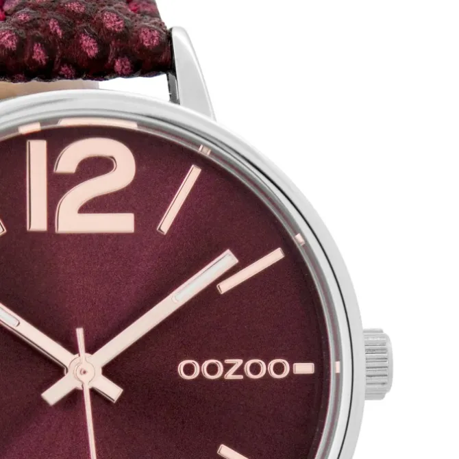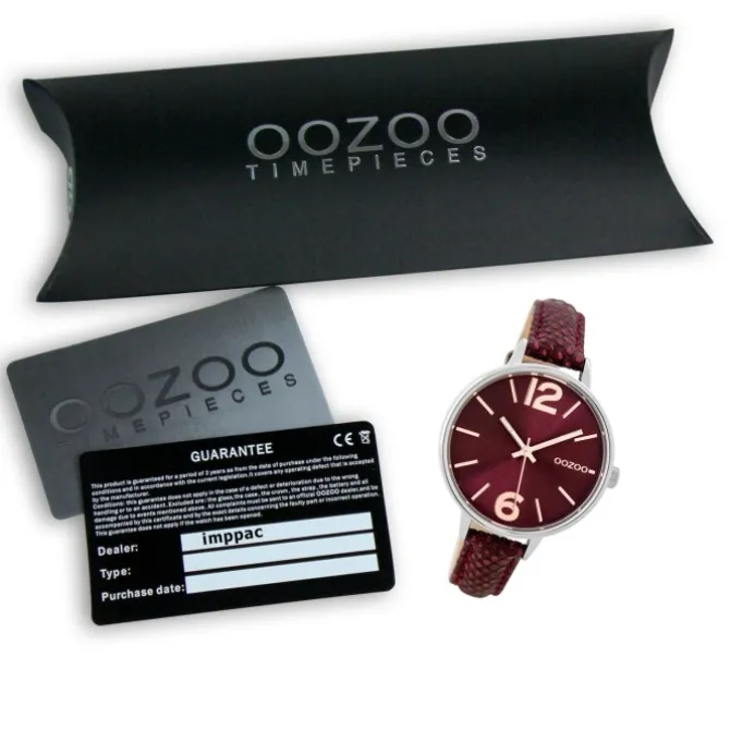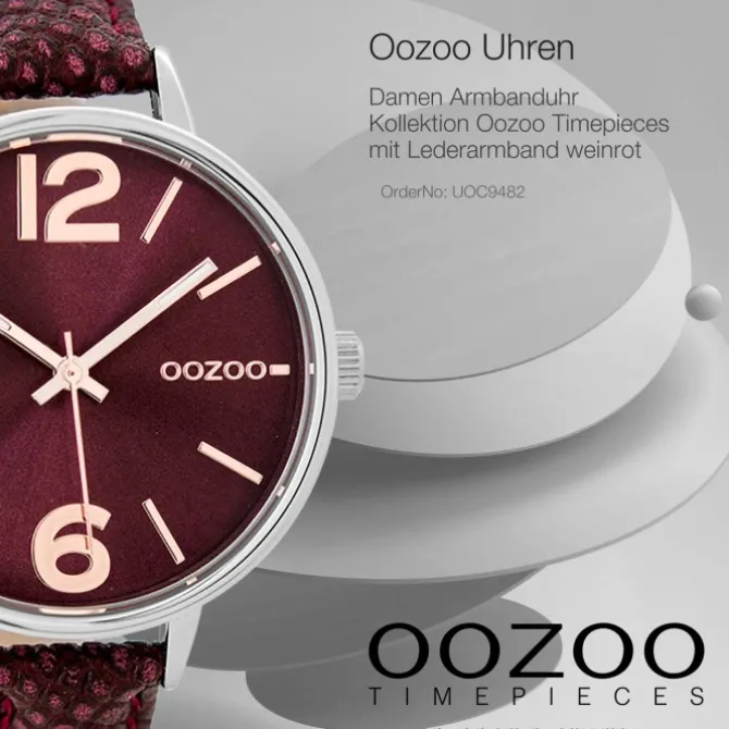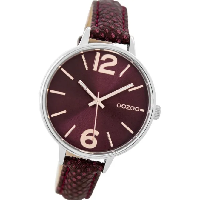 Diese Fashion Uhr für Damen aus der exklusiven Oozoo Timepieces-Kollektion verfügt über ein hochwertiges Leder-Armband in weinrot. Das analoge Quarzwerk und die Wasserdichte bis 3 bar machen diese Armbanduhr zu einem besonders zuverlässigen Begleiter.