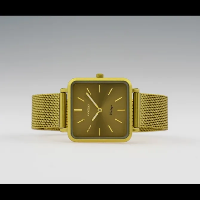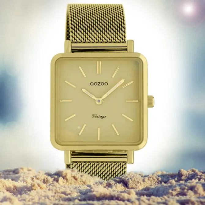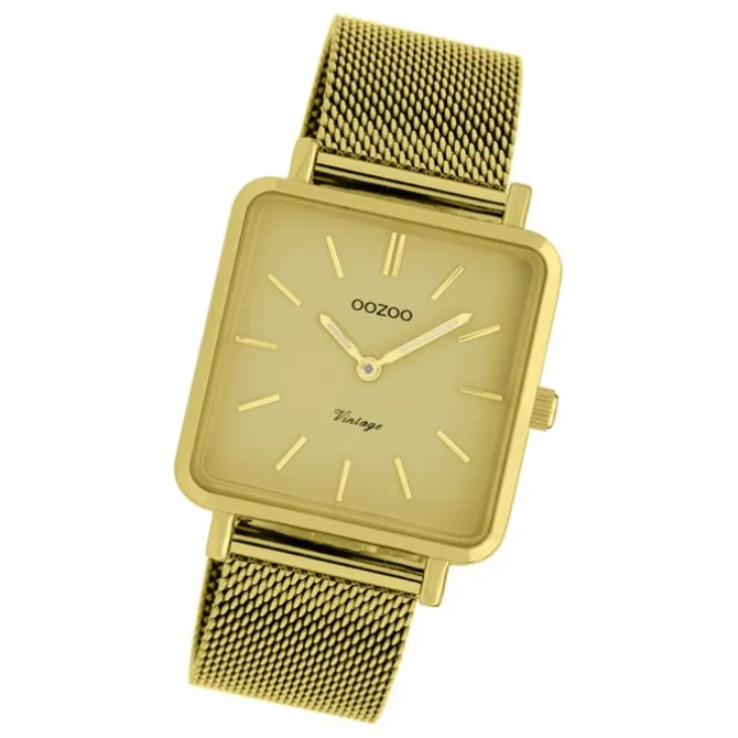Diese Fashion Uhr für Damen aus der exklusiven Oozoo Vintage Series-Kollektion verfügt über ein hochwertiges Edelstahl-Armband in gold. Das analoge Quarzwerk und die Wasserdichte bis 3 bar machen diese Armbanduhr zu einem besonders zuverlässigen Begleiter.