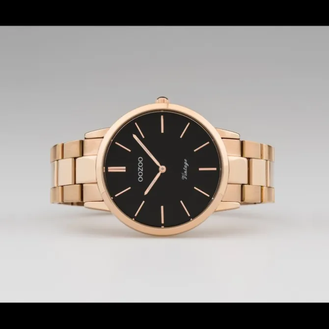 Diese Fashion Uhr für Damen aus der exklusiven Oozoo Vintage Series-Kollektion verfügt über ein hochwertiges Edelstahl-Armband in rosegold. Das analoge Quarzwerk und die Wasserdichte bis 3 bar machen diese Armbanduhr zu einem besonders zuverlässigen Begleiter.