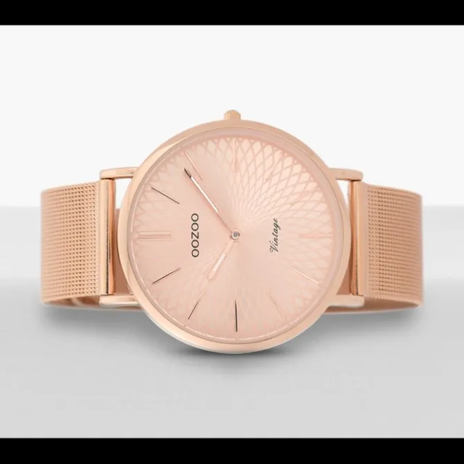 Diese Fashion Uhr für Damen aus der exklusiven Oozoo Vintage Series-Kollektion verfügt über ein hochwertiges Edelstahl-Armband in rosegold. Das analoge Quarzwerk und die Wasserdichte bis 3 bar machen diese Armbanduhr zu einem besonders zuverlässigen Begleiter.