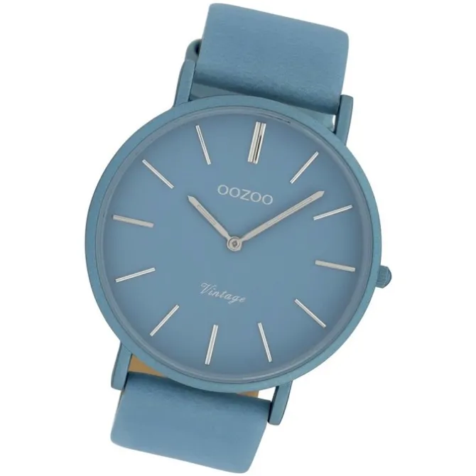 Diese Fashion Uhr für Damen aus der exklusiven Oozoo Vintage Series-Kollektion verfügt über ein hochwertiges Leder-Armband in hellblau. Das analoge Quarzwerk und die Wasserdichte bis 3 bar machen diese Armbanduhr zu einem besonders zuverlässigen Begleiter.