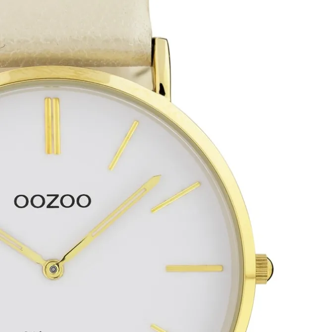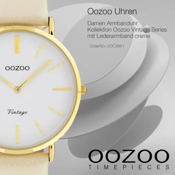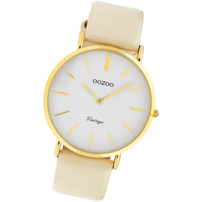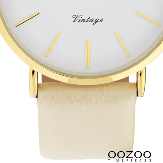 Diese Fashion Uhr für Damen aus der exklusiven Oozoo Vintage Series-Kollektion verfügt über ein hochwertiges Leder-Armband in creme. Das analoge Quarzwerk und die Wasserdichte bis 3 bar machen diese Armbanduhr zu einem besonders zuverlässigen Begleiter.
