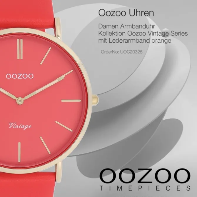 Diese Fashion Uhr für Damen aus der exklusiven Oozoo Vintage Series-Kollektion verfügt über ein hochwertiges Leder-Armband in orange und rot. Das Gehäuse der Uhr ist groß (ca. 40mm). Das analoge Uhrwerk und das Uhrenglas aus Mineralglas machen diese Armbanduhr zu einem hochwertigen und modischen Begleiter.