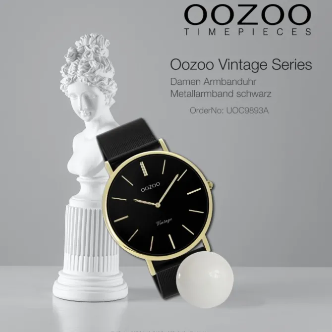 Diese elegante Uhr für Damen aus der exklusiven Oozoo Oozoo Vintage Series-Kollektion verfügt über ein hochwertiges Metall-Armband in schwarz. Das Gehäuse der Uhr ist groß (ca. 40mm). Das analoge Uhrwerk und das Uhrenglas aus Mineralglas machen diese Armbanduhr zu einem hochwertigen und modischen Begleiter.