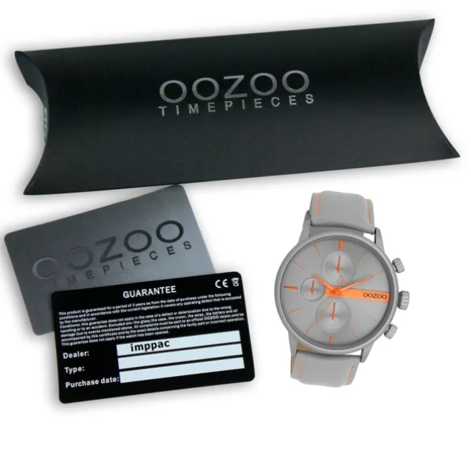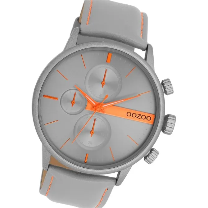 Diese Fashion Uhr für Herren aus der exklusiven Oozoo Oozoo Timepieces-Kollektion verfügt über ein hochwertiges Leder -Armband in grau . Das Gehäuse der Uhr ist groß (ca. 45mm). Das analoge Uhrwerk und das Uhrenglas aus Mineralglas machen diese Armbanduhr zu einem hochwertigen und modischen Begleiter.