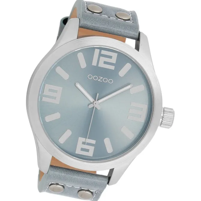 Diese Fashion Uhr für Herren aus der exklusiven Oozoo Oozoo Timepieces-Kollektion verfügt über ein hochwertiges Leder-Armband in graublau. Das Gehäuse der Uhr ist extra groß (ca. 51mm). Das analoge Uhrwerk und das Uhrenglas aus Mineralglas machen diese Armbanduhr zu einem hochwertigen und modischen Begleiter.
