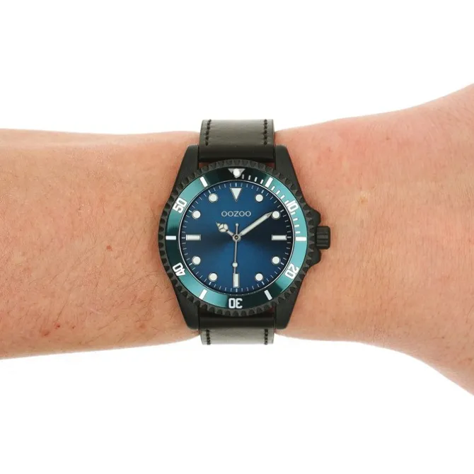 Diese elegante Uhr für Herren aus der exklusiven Oozoo Oozoo Timepieces-Kollektion verfügt über ein hochwertiges Leder-Armband in schwarz. Das analoge Uhrwerk und eine Wasserdichtigkeit bis 3 bar machen diese Armbanduhr zu einem besonders zuverlässigen Begleiter.
