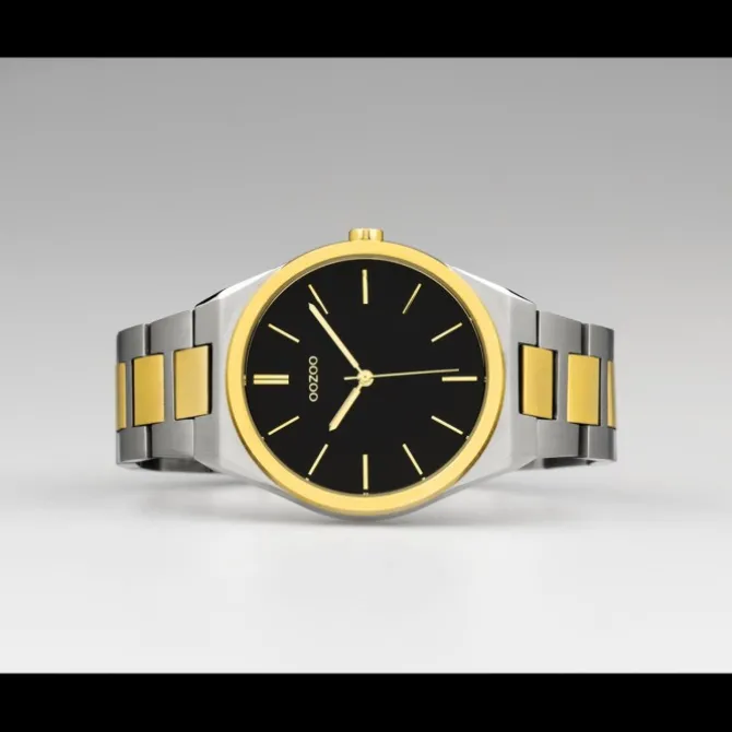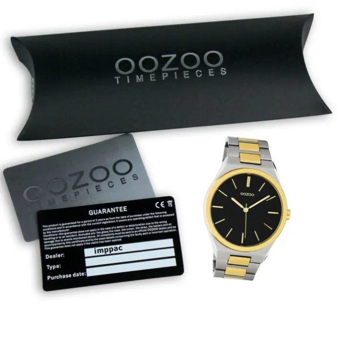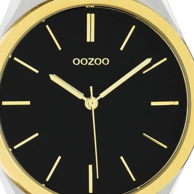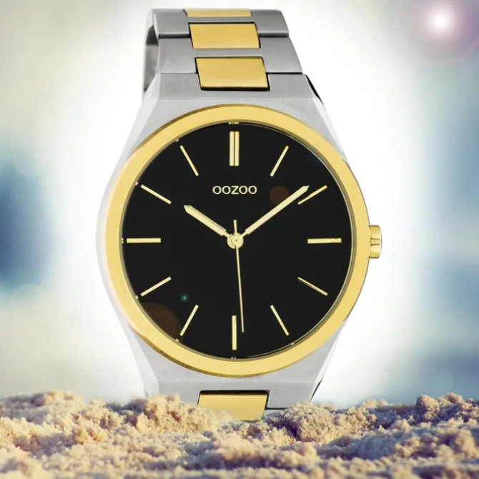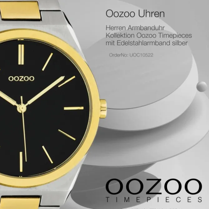 Diese Fashion Uhr für Herren, Damen aus der exklusiven Oozoo Timepieces-Kollektion verfügt über ein hochwertiges Edelstahl-Armband in silber und gold. Das analoge Quarzwerk und die Wasserdichte bis 3 bar machen diese Armbanduhr zu einem besonders zuverlässigen Begleiter.