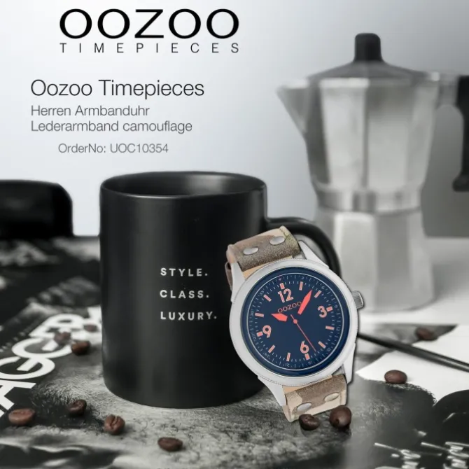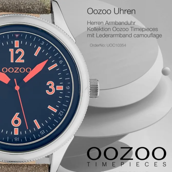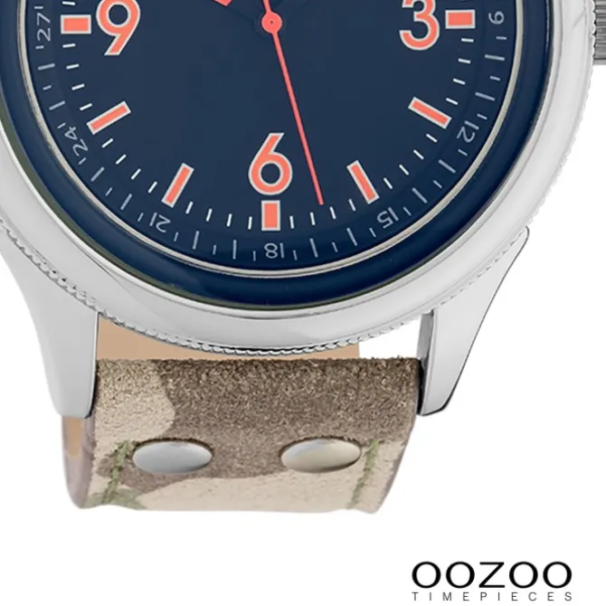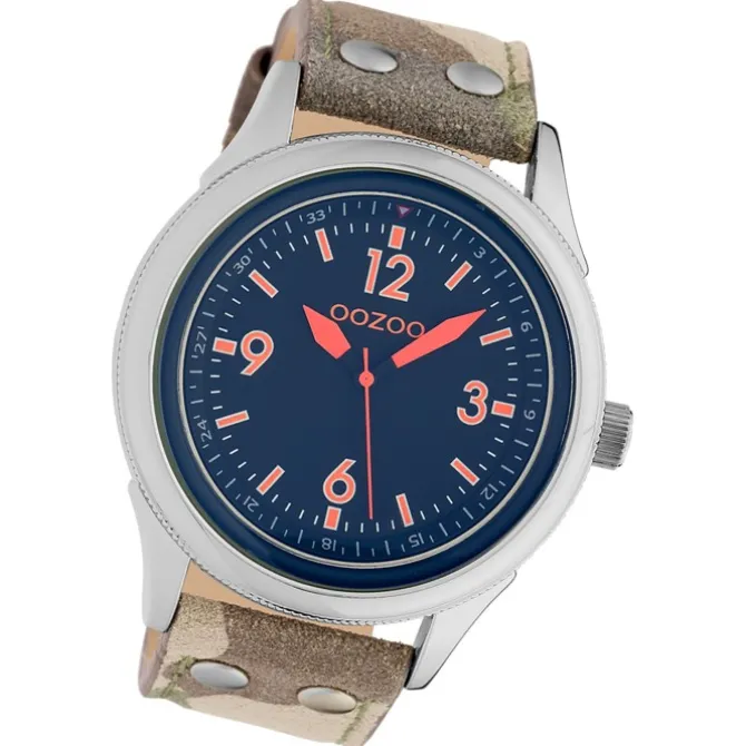 Diese Fashion Uhr für Herren, Damen aus der exklusiven Oozoo Oozoo Timepieces-Kollektion verfügt über ein hochwertiges Leder-Armband in camouflage und braun . Das Gehäuse der Uhr ist extra groß (ca. 48mm). Das analoge Uhrwerk und das Uhrenglas aus Mineralglas machen diese Armbanduhr zu einem hochwertigen und modischen Begleiter.