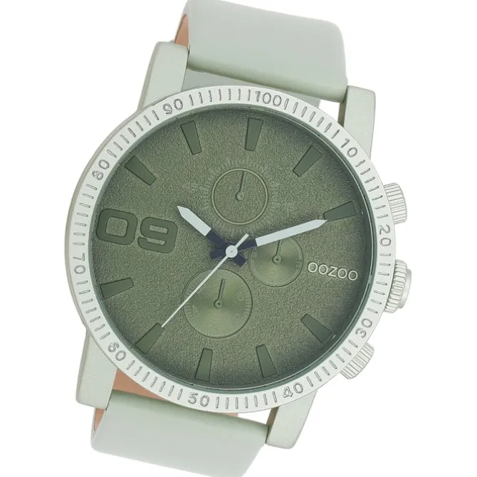 Diese Fashion Uhr für Damen und Herren aus der exklusiven Oozoo Oozoo Timepieces-Kollektion verfügt über ein hochwertiges Leder -Armband in grün . Das Gehäuse der Uhr ist extra groß (ca. 48mm). Das analoge Uhrwerk und das Uhrenglas aus Mineralglas machen diese Armbanduhr zu einem hochwertigen und modischen Begleiter.