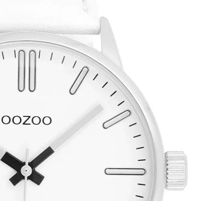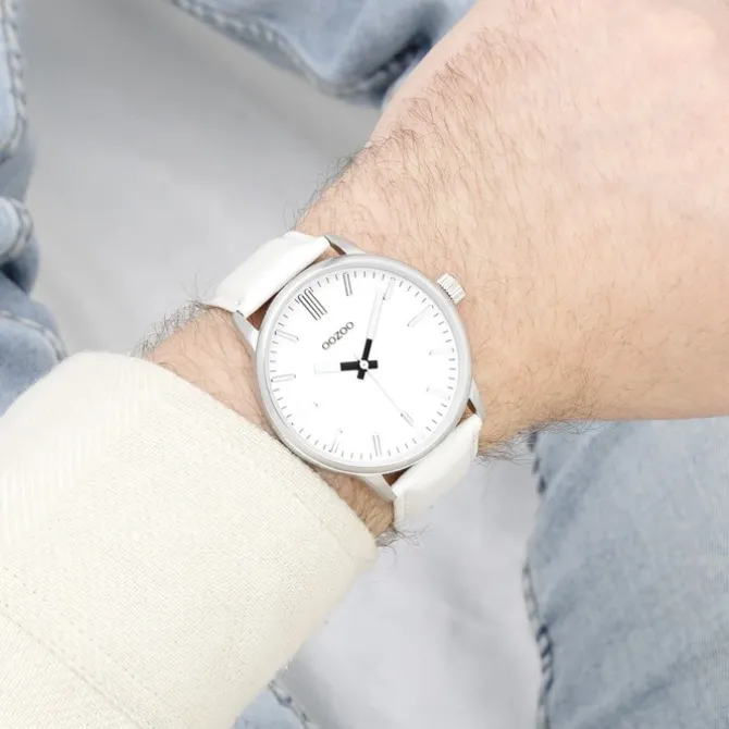 Die Casual Uhr für Damen und Herren aus der exklusiven Oozoo Oozoo Timepieces-Kollektion hat ein hochwertiges Leder-Armband in weiß . Das Gehäuse der Uhr ist groß (ca. 45mm). Das analoge Uhrwerk und das Uhrenglas aus Mineralglas machen diese Armbanduhr zu einem schönen und modischen Accessoire.