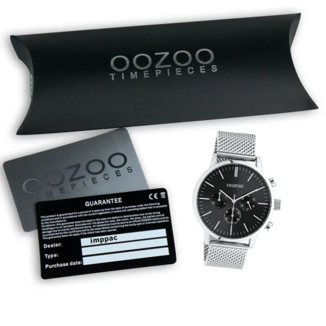 Diese Casual Uhr für Unisex aus der exklusiven Oozoo Oozoo Timepieces-Kollektion verfügt über ein hochwertiges Edelstahl-Armband in schwarz. Das analoge Uhrwerk und eine Wasserdichtigkeit bis 3 bar machen diese Armbanduhr zu einem besonders zuverlässigen Begleiter.