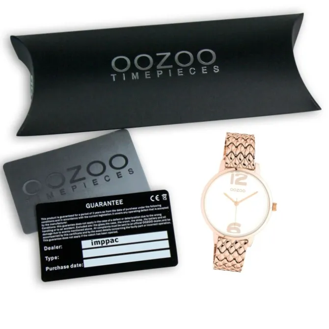 Diese elegante Uhr für Unisex aus der exklusiven Oozoo Oozoo Timepieces-Kollektion verfügt über ein hochwertiges Edelstahl-Armband in roségold. Das analoge Uhrwerk und eine Wasserdichtigkeit bis 3 bar machen diese Armbanduhr zu einem besonders zuverlässigen Begleiter.
