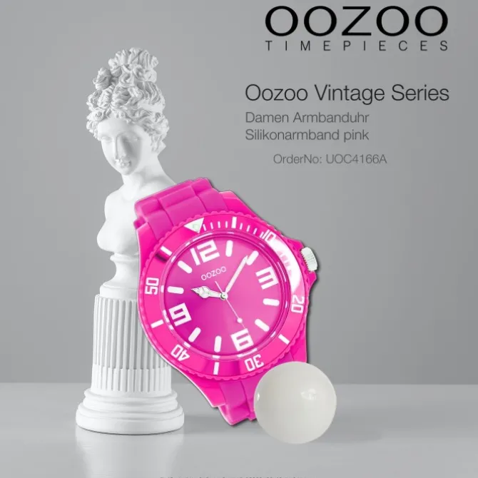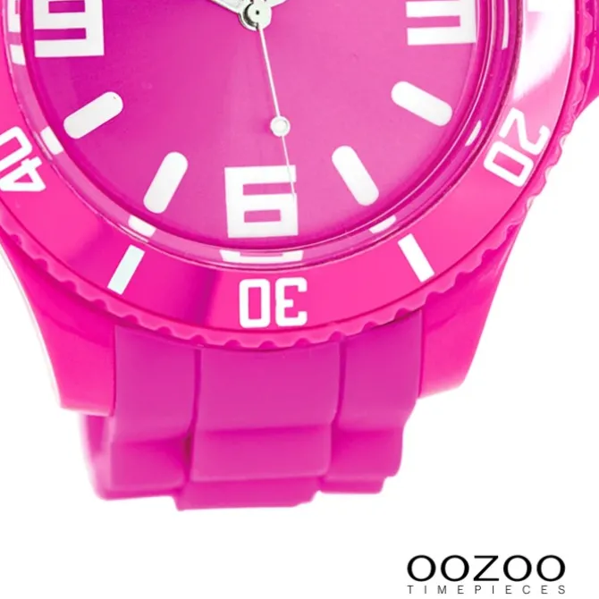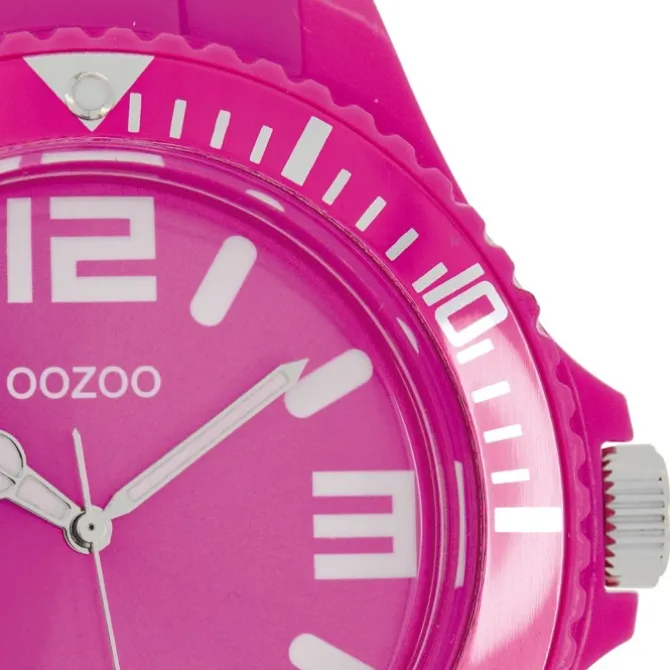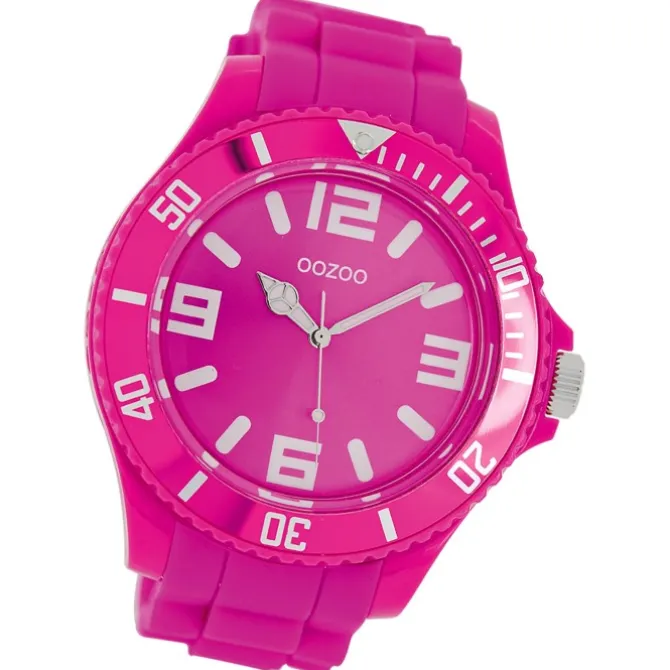 Diese Fashion Uhr für Damen und Herren aus der exklusiven Oozoo Oozoo Vintage Series-Kollektion verfügt über ein hochwertiges Silikon-Armband in pink. Das Gehäuse der Uhr ist extra groß (ca. 48mm). Das analoge Uhrwerk und das Uhrenglas aus Mineralglas machen diese Armbanduhr zu einem hochwertigen und modischen Begleiter.