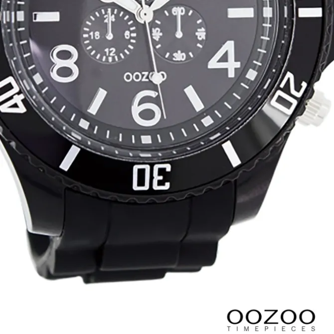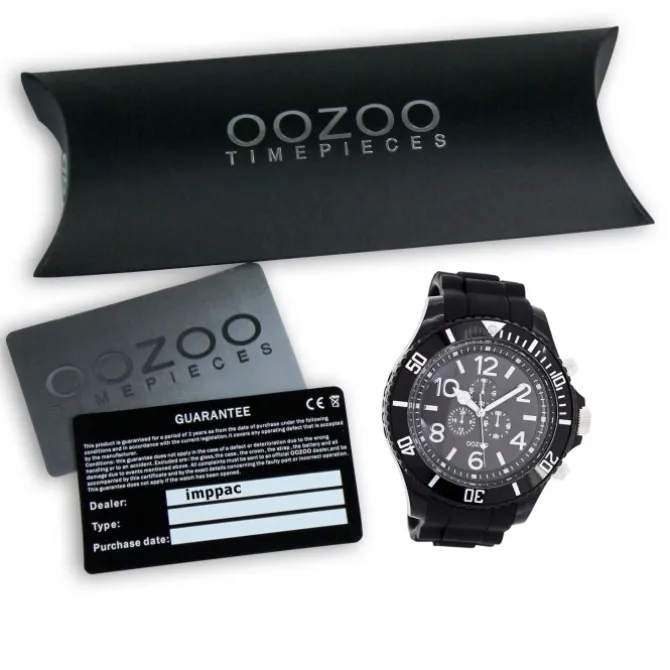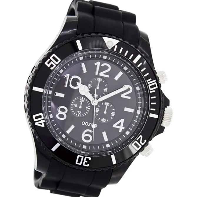 Diese Fashion Uhr für Damen und Herren aus der exklusiven Oozoo Oozoo Vintage Series-Kollektion verfügt über ein hochwertiges Silikon-Armband in schwarz. Das Gehäuse der Uhr ist extra groß (ca. 48mm). Das analoge Uhrwerk und das Uhrenglas aus Mineralglas machen diese Armbanduhr zu einem hochwertigen und modischen Begleiter.