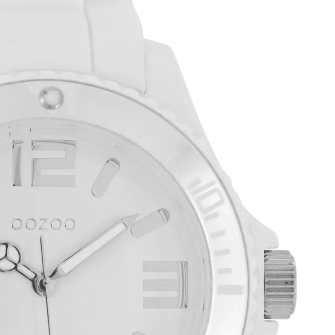Diese Fashion Uhr für Damen und Herren aus der exklusiven Oozoo Oozoo Vintage Series-Kollektion verfügt über ein hochwertiges Silikon-Armband in weiß. Das Gehäuse der Uhr ist groß (ca. 43mm). Das analoge Uhrwerk und das Uhrenglas aus Mineralglas machen diese Armbanduhr zu einem hochwertigen und modischen Begleiter.